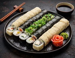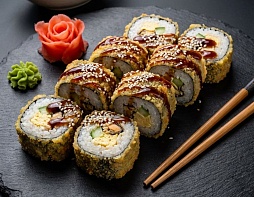 В меню представлено около 20 видов суши с лососем, угрем, крабом, креветками и оригинальными соусами. Заказать готовую еду на дом и в офис можно здесь, на нашем официальном ресурсе. Оставляйте заявки менеджерам в режиме онлайн – и через короткое время курьер с ароматной посылкой постучит в вашу дверь.