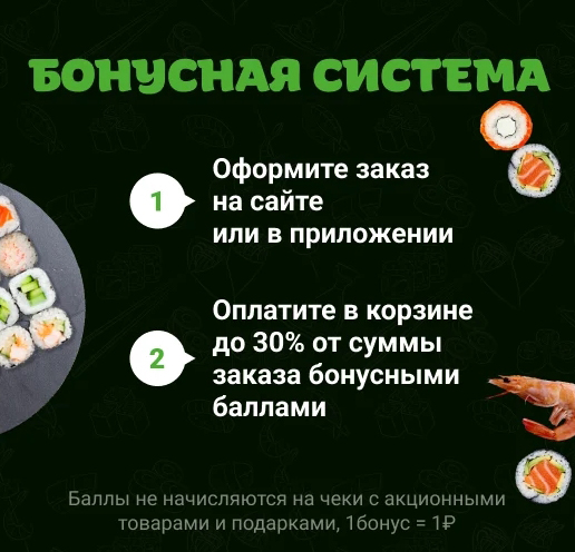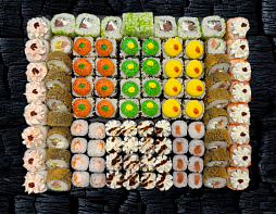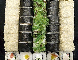 В меню представлено около 20 видов суши с лососем, угрем, крабом, креветками и оригинальными соусами. Заказать готовую еду на дом и в офис можно здесь, на нашем официальном ресурсе. Оставляйте заявки менеджерам в режиме онлайн – и через короткое время курьер с ароматной посылкой постучит в вашу дверь.